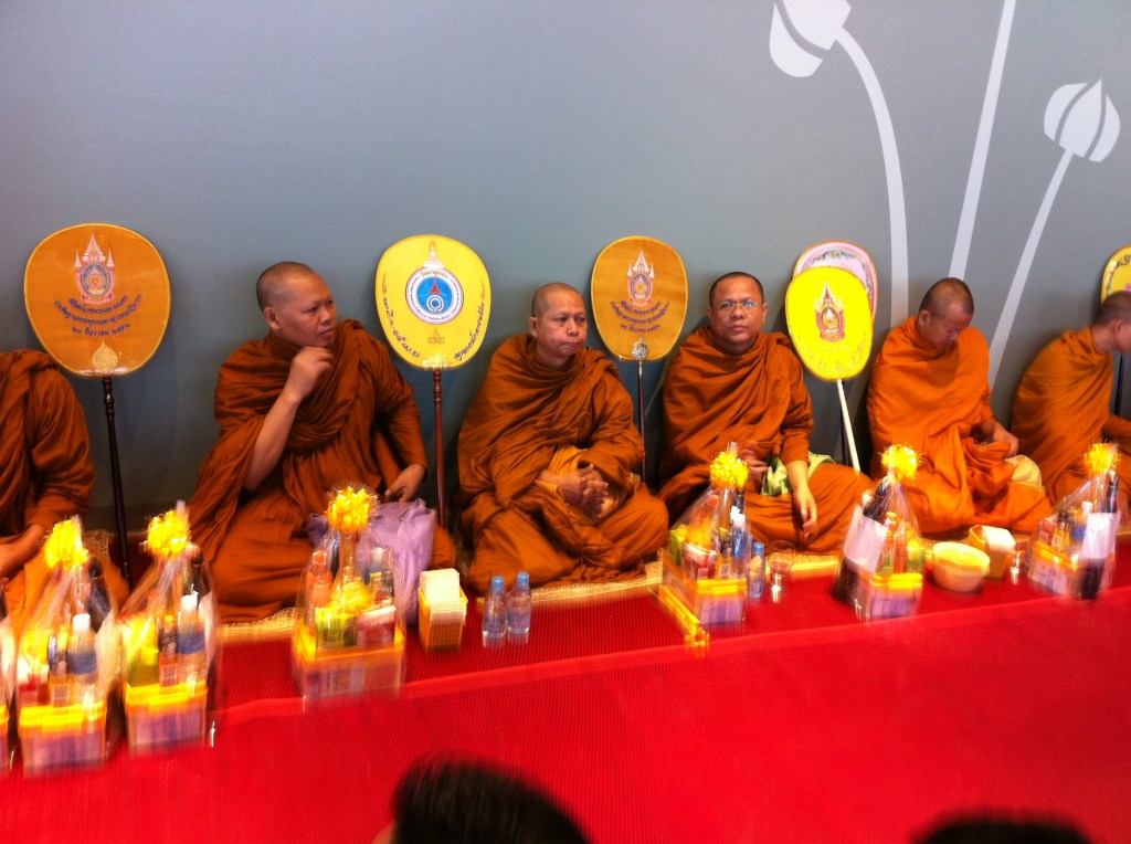 After, the monks were thanked by the manager of the store and the gifts were given to them. Which they quickly took and hid them under their robes, where they were sitting. They then thanked all of us for the gifts and wished us well.